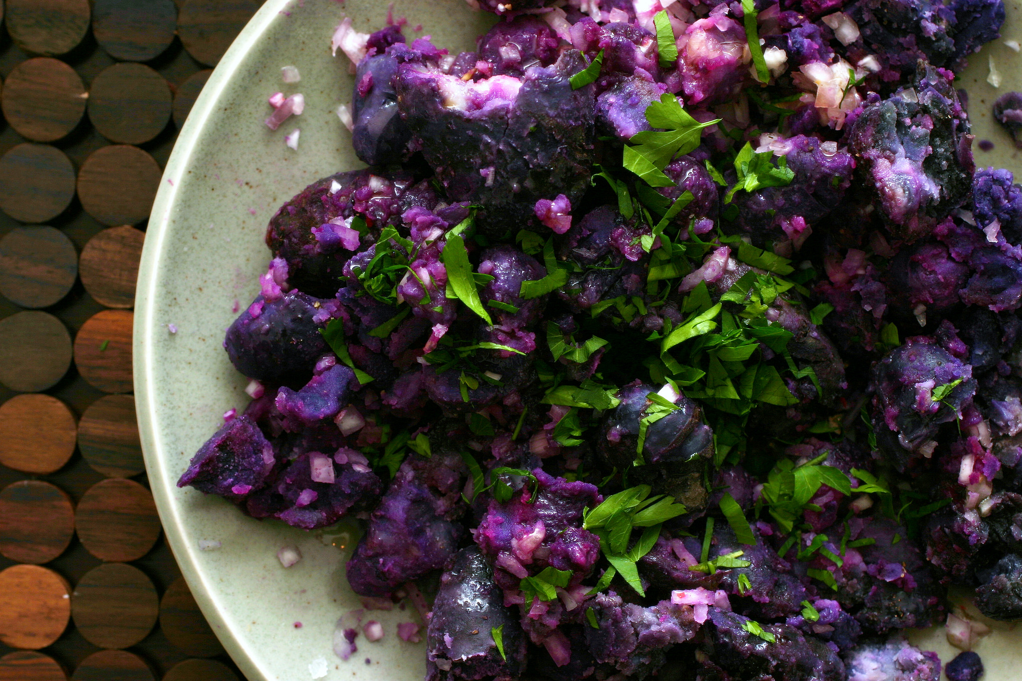 fork-crushed purple potatoes