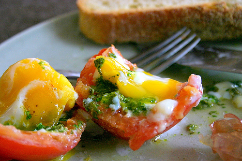 “No. And then you scoop out a tomato and you put it in the bottom and bake an egg in it.”