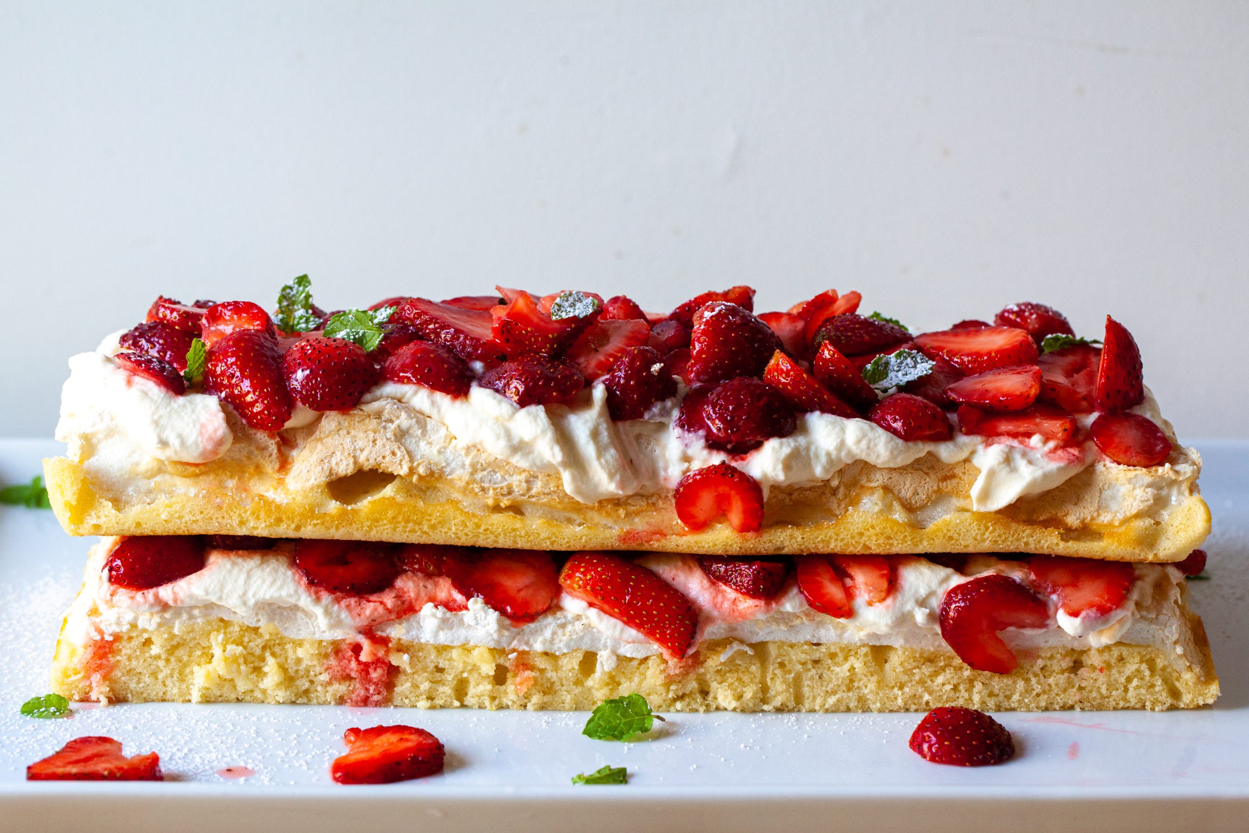 I first read about brita, pardon me, Brita-Kakku, cakes — described as a typical Finnish summer cake with a based of a butter cake with a meringue baked onto it, whipped cream, and fresh berries — a few years ago and was instantly mesmerized by not just by the delicious promise of these ingredients but because, forgive me, the mess of it. In image search after image search, I drooled over charmingly lopsided cakes with raw edges, whipped cream with no regard for boundaries, meringues that wobbled and crumbled as they pleased, berries tumbling free, and I wanted it. I realize that there are more practical ways to approach it, such as a single-layer cake, but I didn’t want practical, I wanted berry cake chaos.